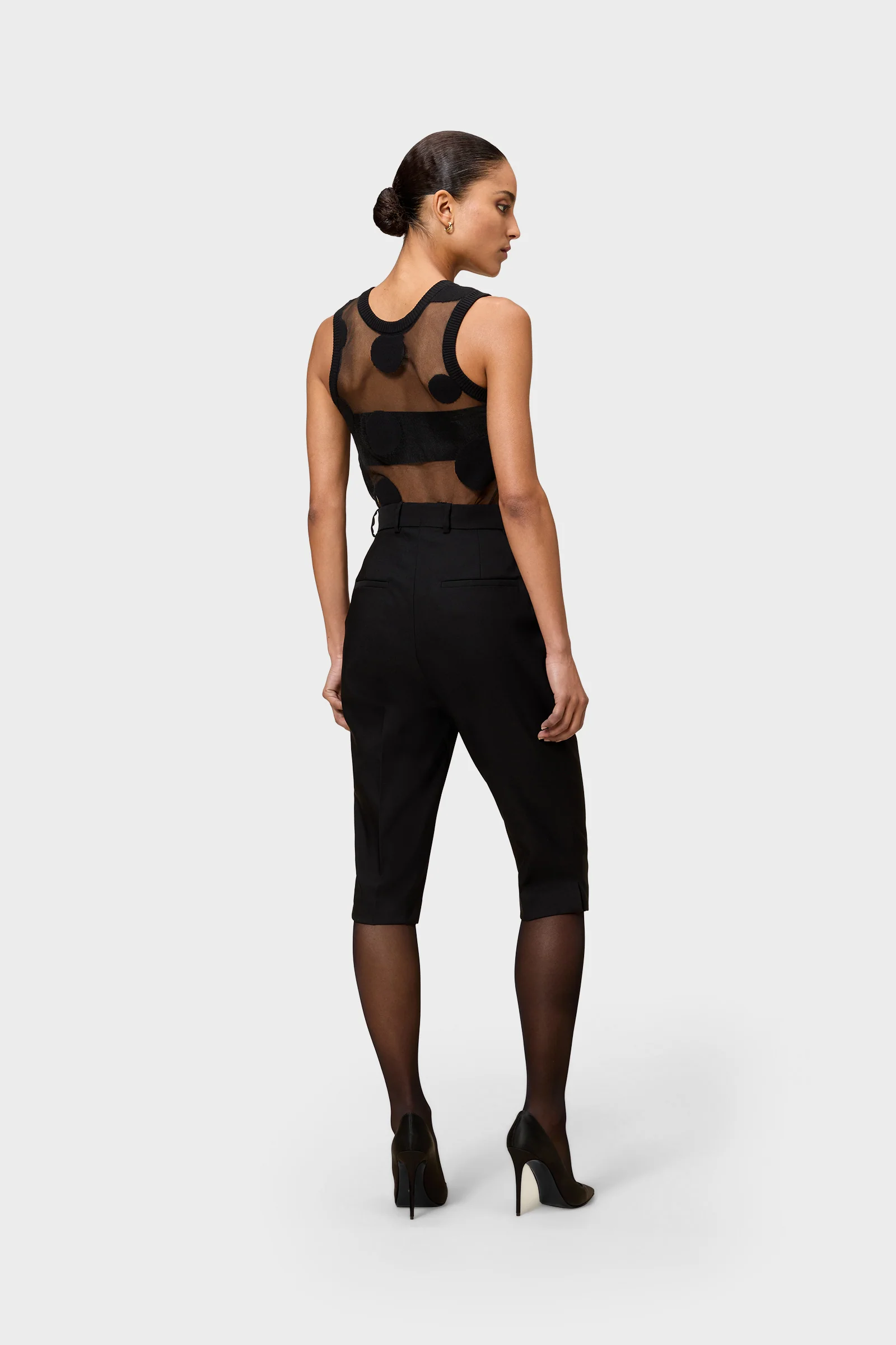 The classic pattern of the top is given a modern twist with intricate polka dot hole design on knit jacquard.
